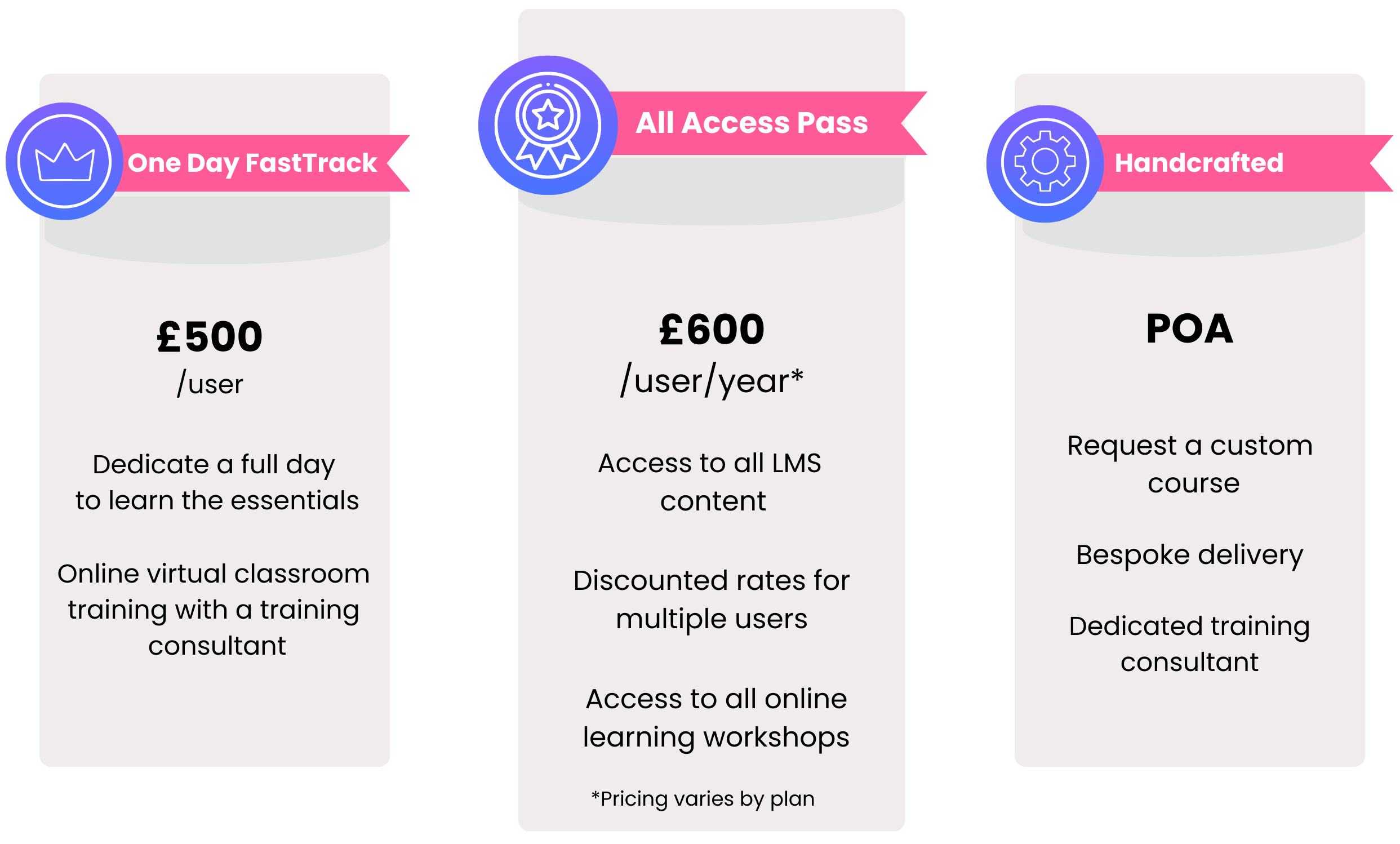 | Live Sessions | Single online session | Unlimited access to our live workshops with experts |